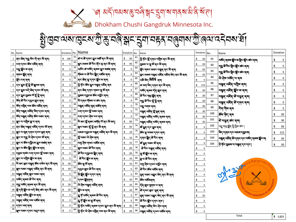 H. H. the 14th Dalai Lama’ long Life Tensugh Donor’s list.